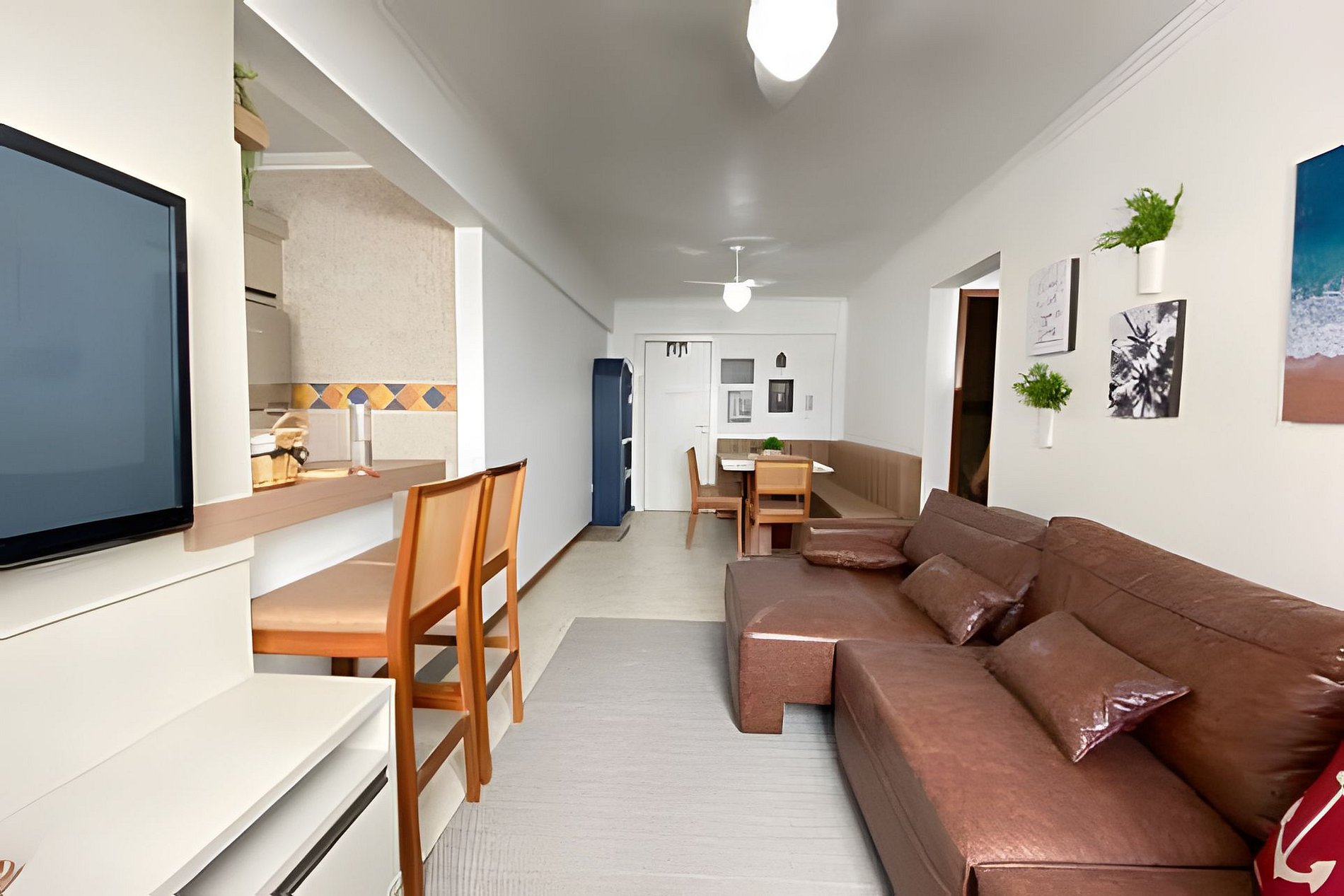 - Sala de estar e jantar com ventilador de teto.